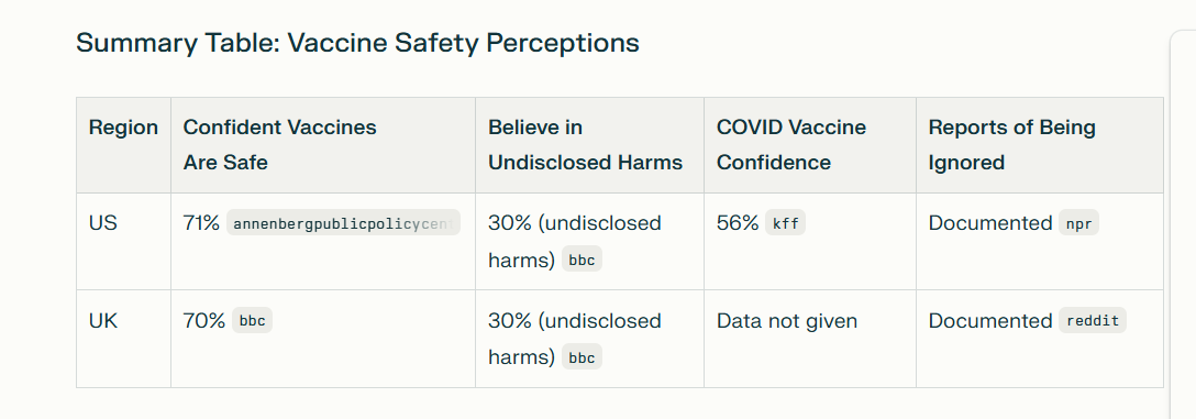 We have absolutely no idea how people actually feel about vaccines because there is no safe space to express doubt or ask questions about vaccines. According to Perplexity, governments or authorities might limit or control public discourse about certain topics, including health-related issues, to ensure public safety, build trust in public health measures, or maintain social stability.