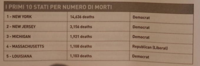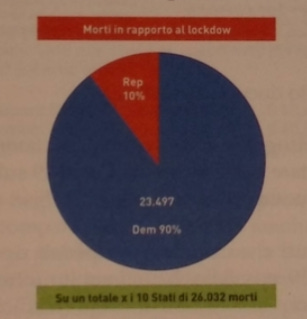 In short, it seems that people die in great numbers precisely where full lockdowns were imposed quickly. Either the virus was created by Trump to wipe out Democrats (ahahah…), or Democrats have a particular capacity for producing deaths—just as in “Piddina” Italy, where deaths of every kind and for every reason are promptly classified as “Covid‑19 deaths.”