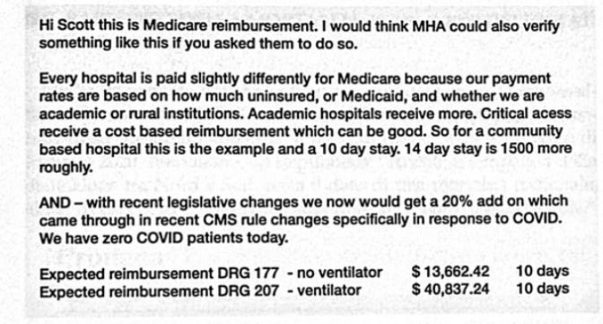 And to ensure that clinics and hospitals reported as many Covid‑19 deaths as possible, significant financial incentives were introduced immediately. Thus, the public insurers (Medicare, Medicaid) reimburse a clinic $13,622.42 if a person dies after ten days of hospitalization without needing a ventilator, whereas if the person dies after ventilator use—and thus with Covid‑19, since ventilator use is prescribed by the WHO protocol for Covid‑19—the clinic receives the much more substantial sum of $40,837.24.