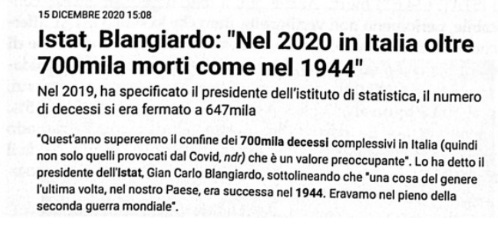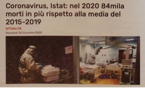 Over the months ISTAT has updated the data, up to the latest report published toward the end of December, picked up by all newspapers with headlines like that of Corriere Adriatico! Il Fatto Quotidiano had a similar headline, but specifying that the +84,000 deaths occurred between February and November 2020.